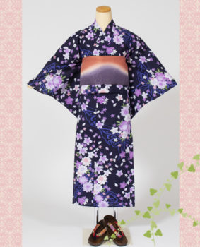 浴衣らしい桔梗柄 紺地に白抜きの柄はシンプルですが大人っぽいお着物です